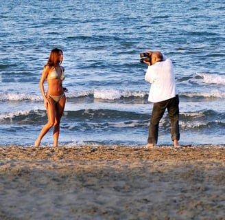 I got there early and studied him as he created what I could see were going to be amazing shots and he was even turning the family’s quick trip to the beach into a kind of story, that did impress me I must admit. Then came my turn, which was totally nerve-wracking at first, especially as everyone on the beach and in the bars & restaurants were staring at me! However he said “just be yourself, relax, enjoy the sunset” and pow, I suddenly felt something shift inside me - like I was stepping into a version of myself I didn’t even know existed, the wolf whistling from some rowdy football hooligans went quiet even though I could see they were still doing it, like a trance I just did my own thing and everything else around me was a blur.